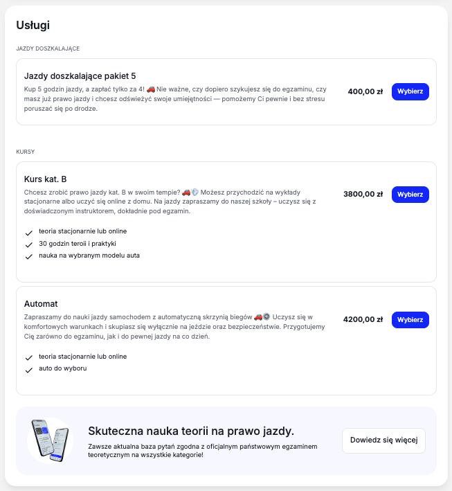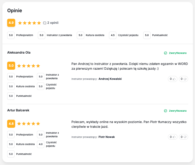 Dla Ciebie to prosty mechanizm: ruch → porównanie profili → kontakt → zapis. I tu jest sedno: profil musi być aktualny i kompletny, bo kursant podejmuje decyzję w kilkanaście sekund.